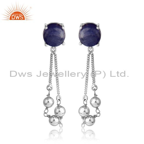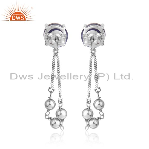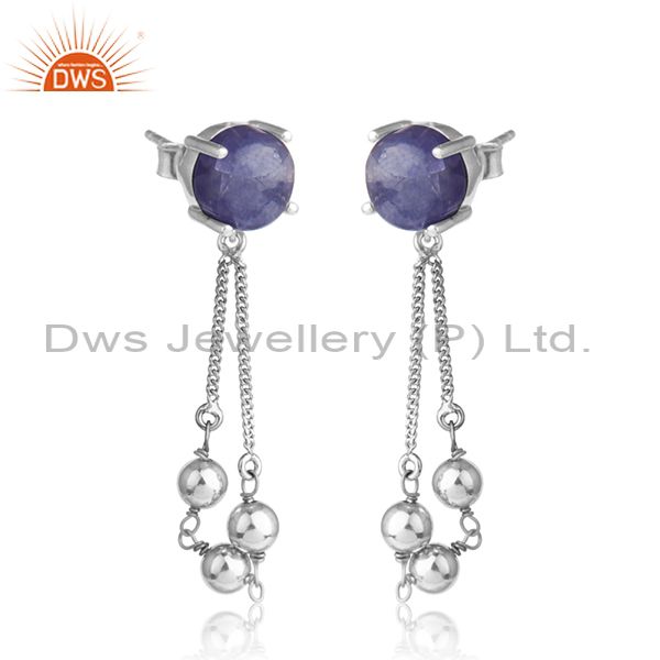 Designer White Rhodium Plated Silver Tanzanite Gemstone Earrings