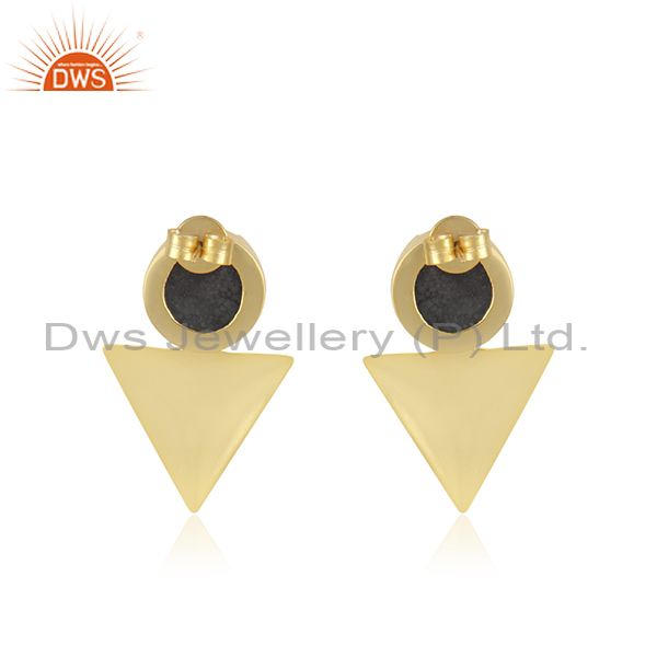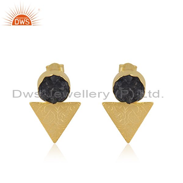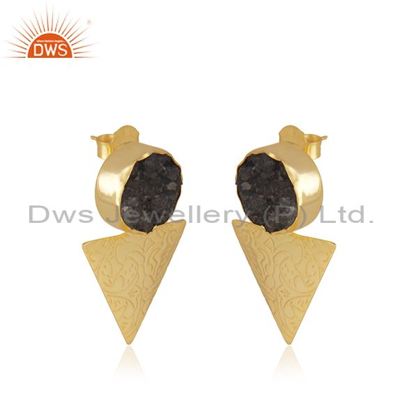 Designer Yellow Gold Plated Brass Fashion Druzy Gemstone Stud Earrings for Girls