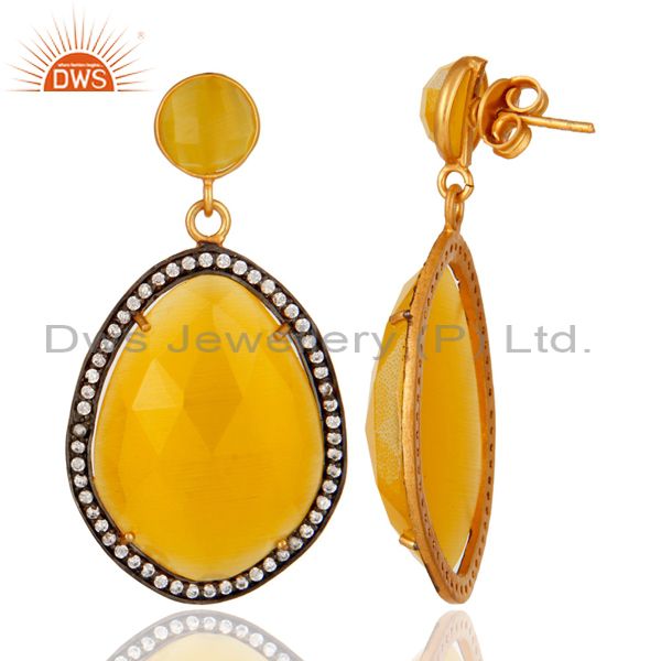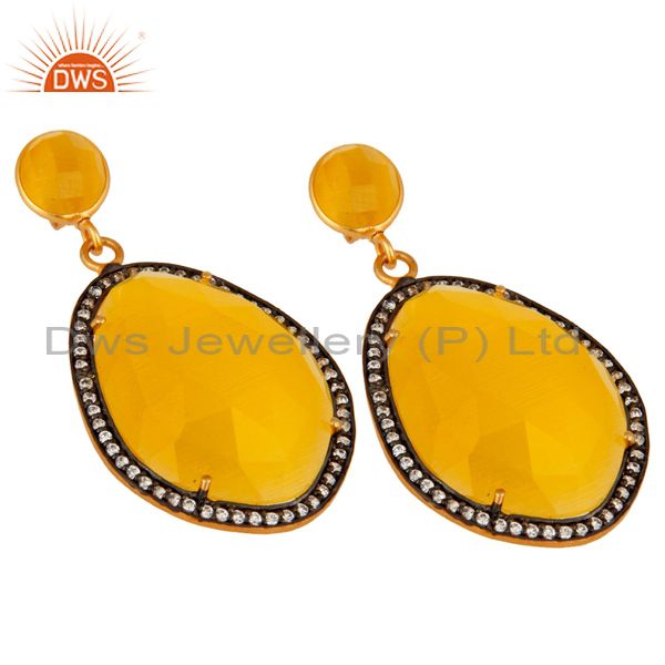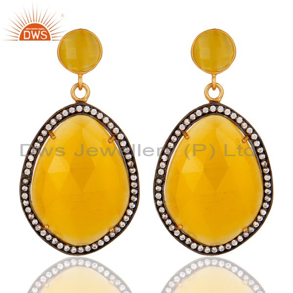 Designer Yellow Moonstone Fashion Gemstone Earrings With CZ in 18K Gold On Brass