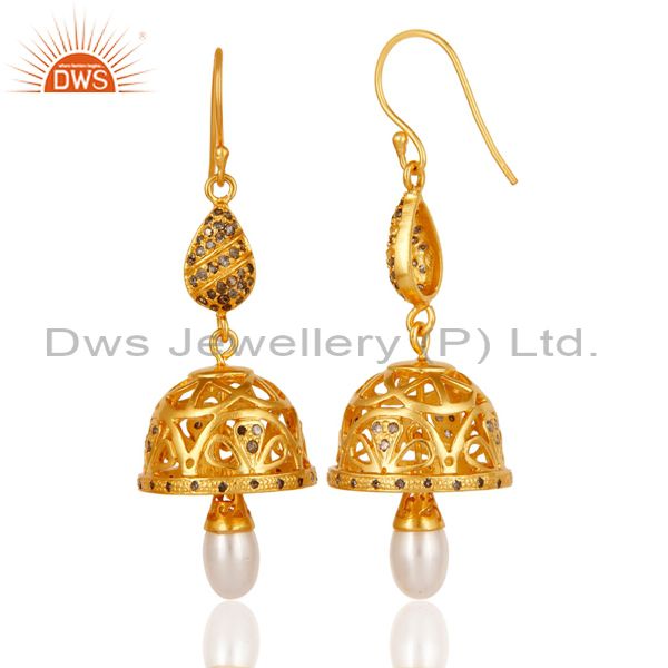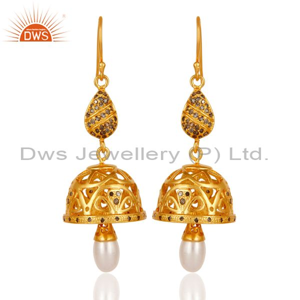 Diamond & Pearl Handmade Jhumka Earring with 18k Gold Plated 925 Sterling Silver