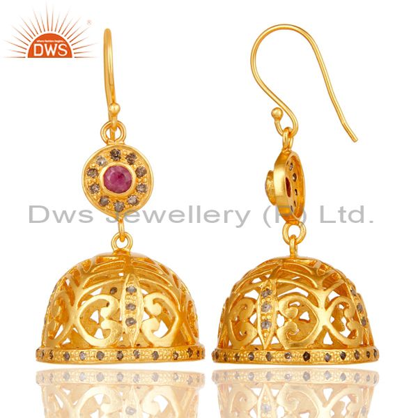 Diamond & Ruby Jhumka Earrings with 18k Yellow Gold Plated Sterling Silver