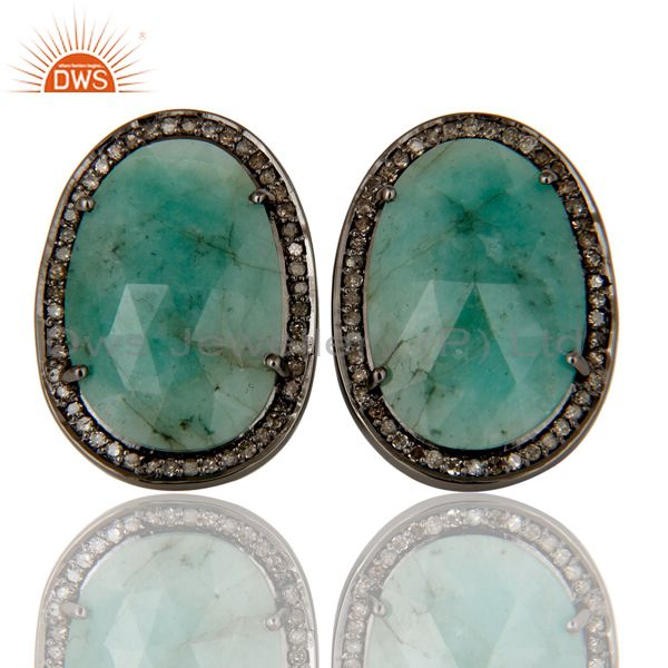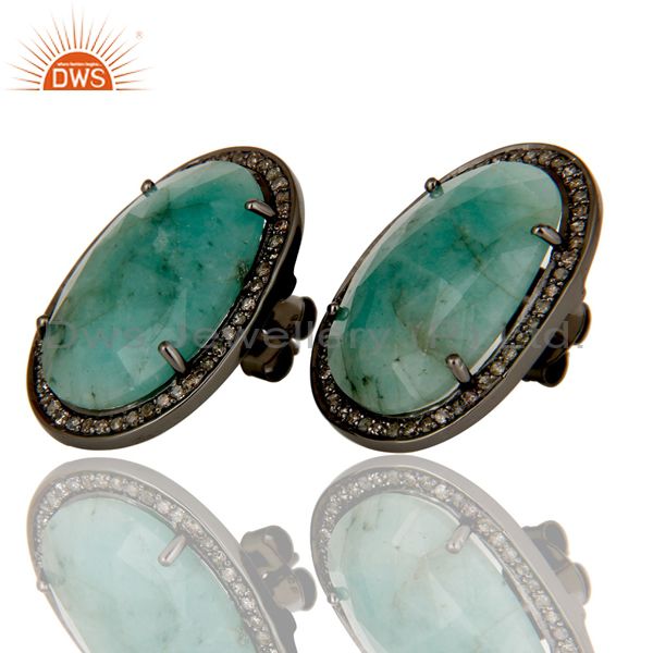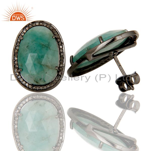 Diamond and Emerald Black Oxidized Sterling Silver Earring Stud