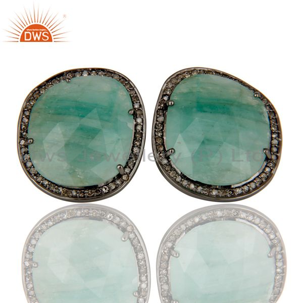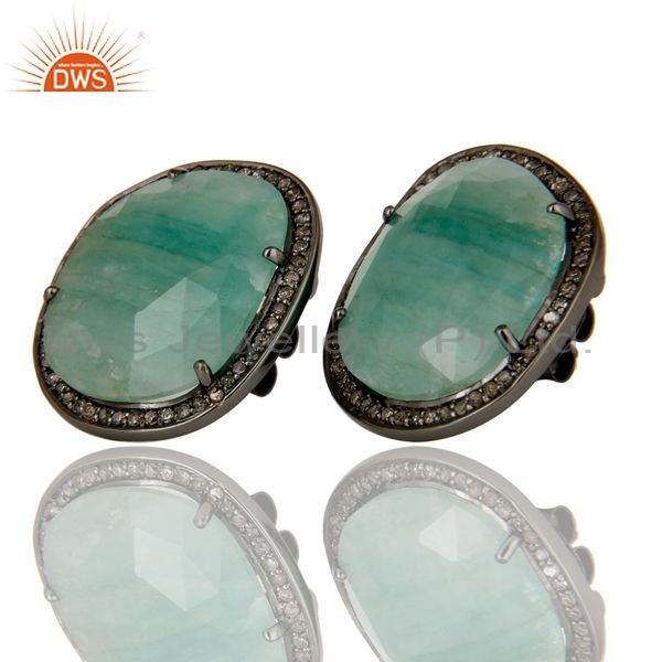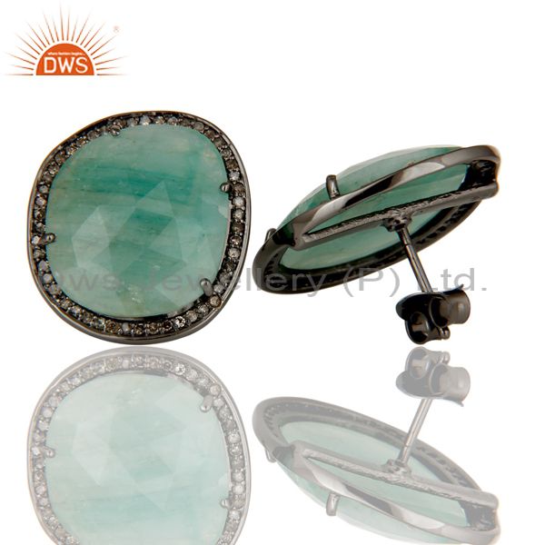 Diamond and Emerald Sterling Silver Black Oxidized Stud Earring