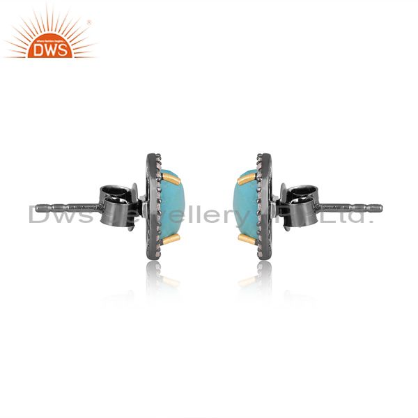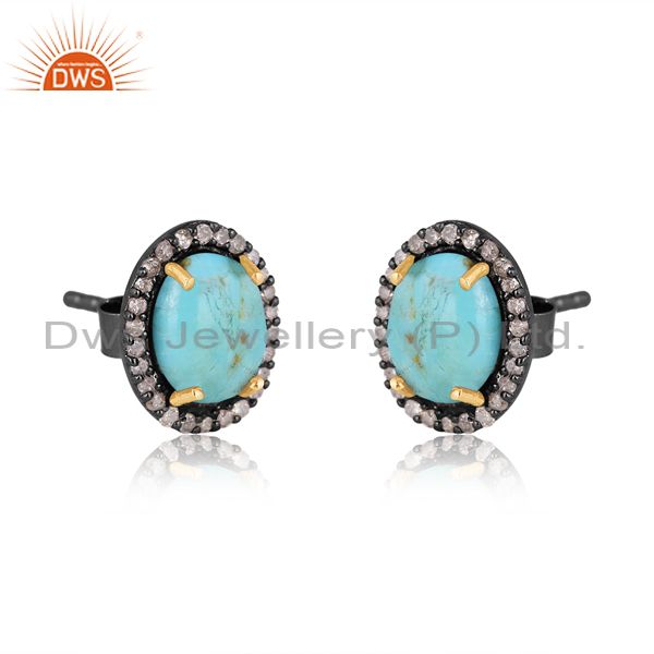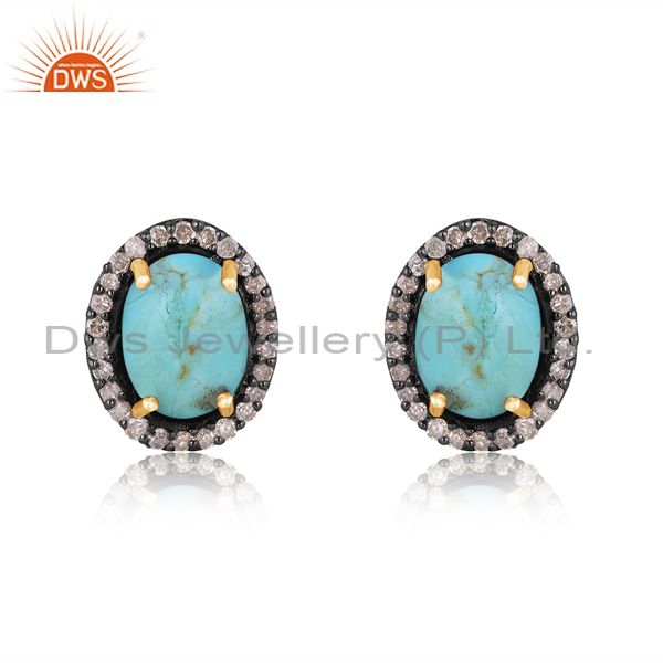 Diamond And Kingman Turquoise Set Fine Brass Gold Earrings