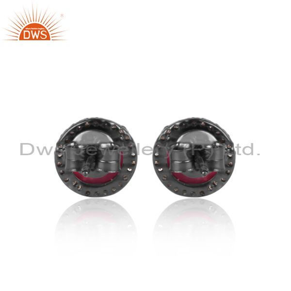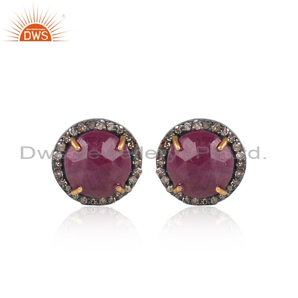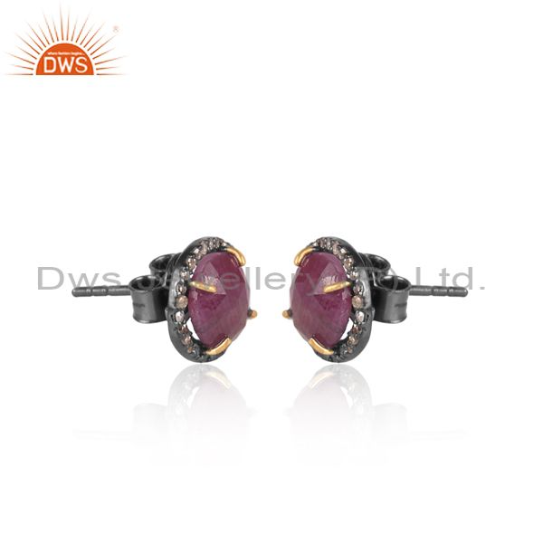 Diamond And Ruby Set Gold And Black On 925 Silver Earrings