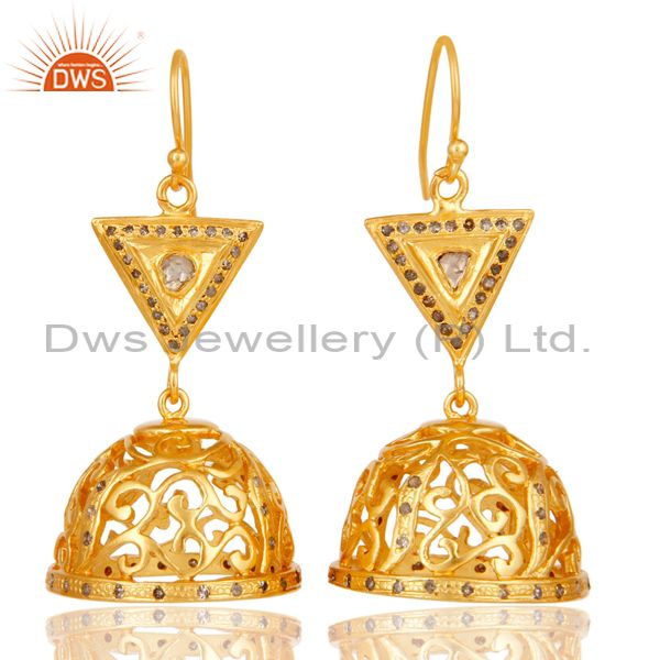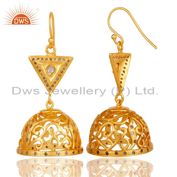 Diamond Cut Fancy Jhumka Earrings with 18k Gold Plated Sterling Silver