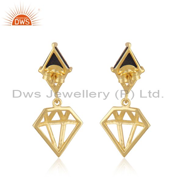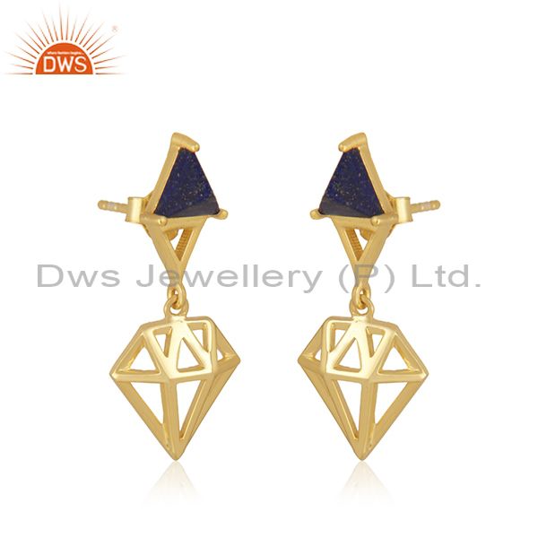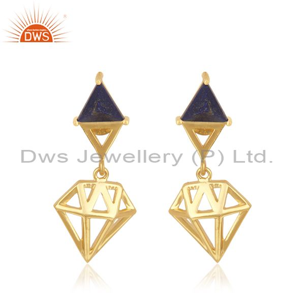 Diamond Shape Lapis Lazuli Gemstone Gold Plated 925 Silver Drop Earring Supplier