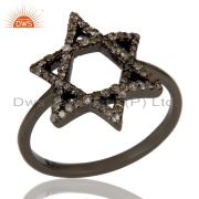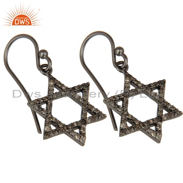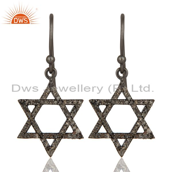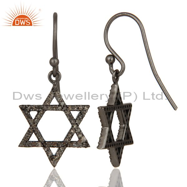 Diamond with Sterling Silver Black Oxidized Star Style Stud Earring