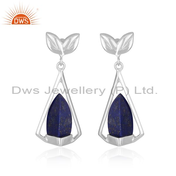 Dolphin Tale Shape Fine Silver Lapis Lazuli Natural Gemstone Earrings