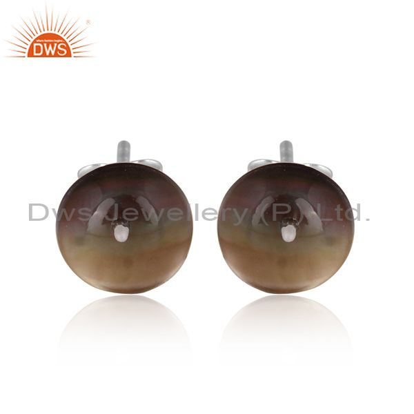Doublet Gray Mop Crystal Set Fine Sterling Silver Earrings