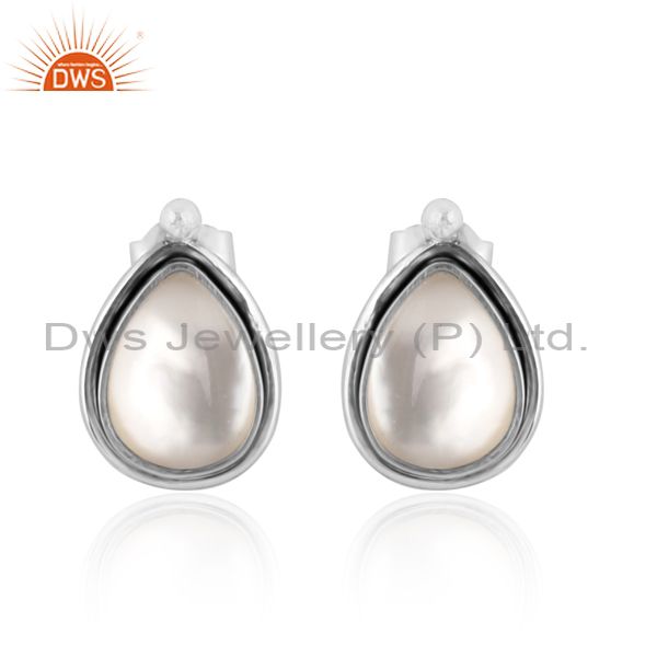 Doublet Mother Of Pearl Crystal Set Oxidized Silver Earrings