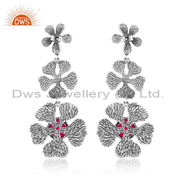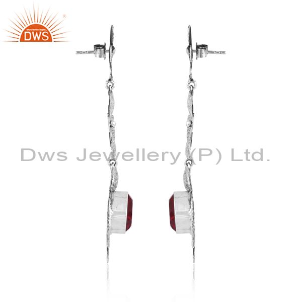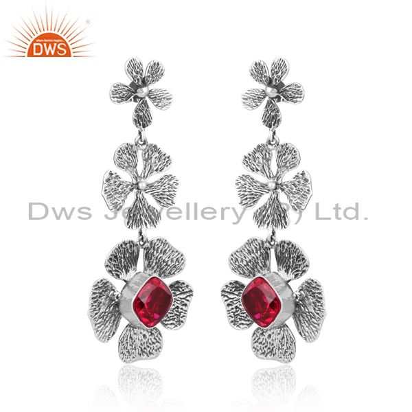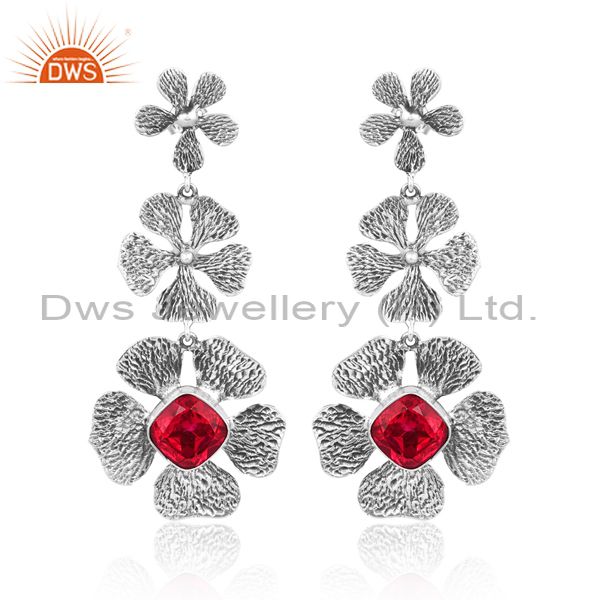 Doublet Rubellite Tourmaline Quartz On Flower Shaped Earring