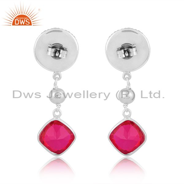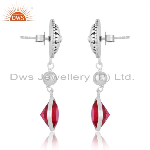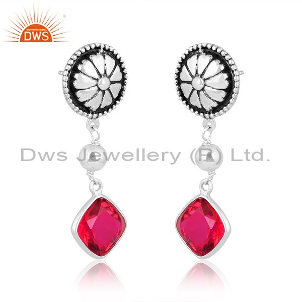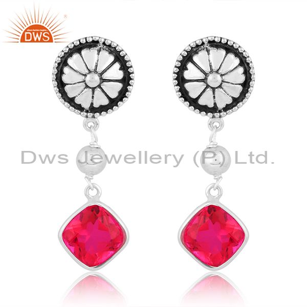 Doublet Rubylite Tourmaline Quartz Set Oxide Silver Earrings
