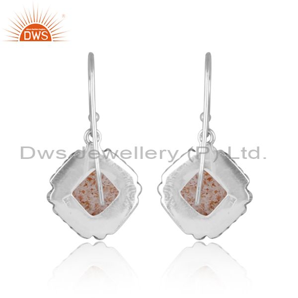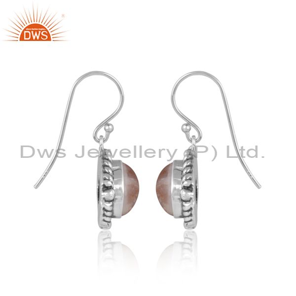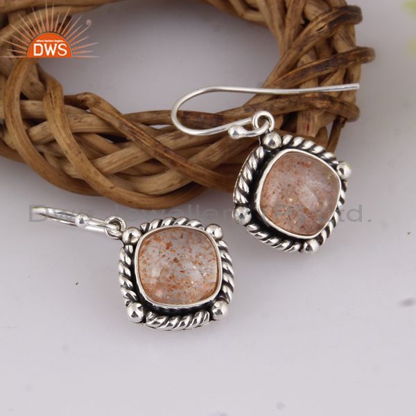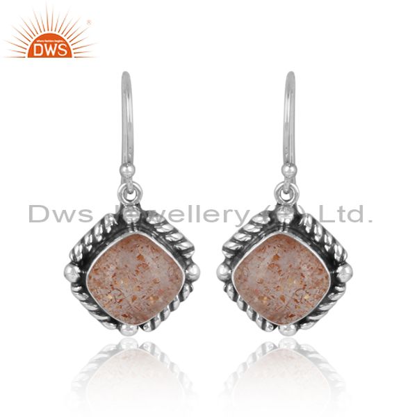 Doublet Sunstone Crystal Set Oxidized 925 Silver Earrings