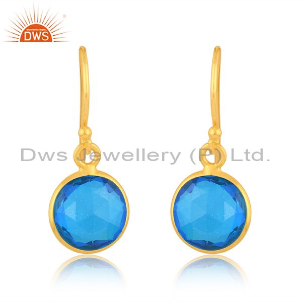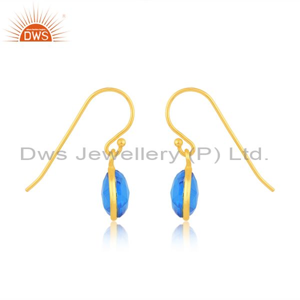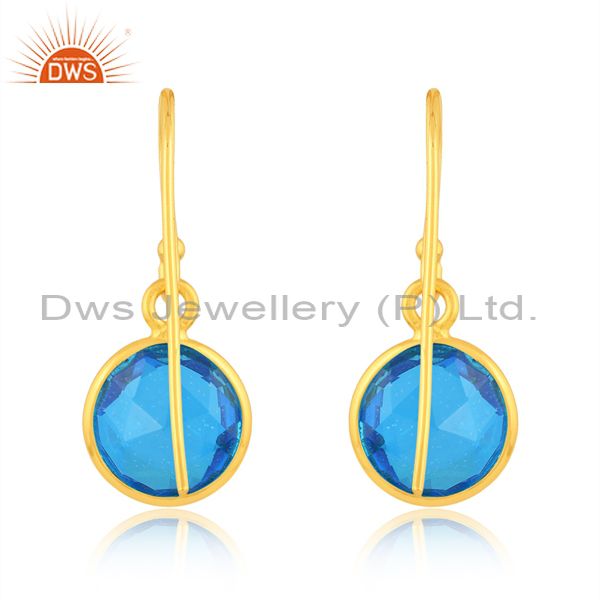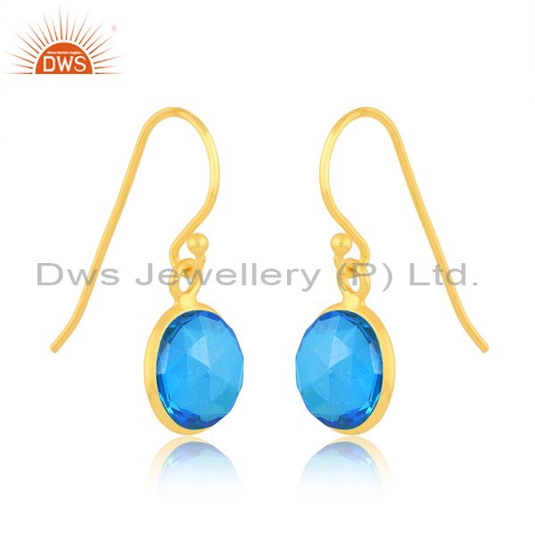 Doublet Swiss Blue Topaz On 18K Gold Sterling Silver Earring