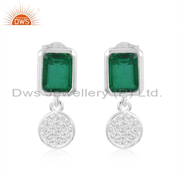 Doublet Zambian Emerald Quartz & Cubic Zirconia Earrings