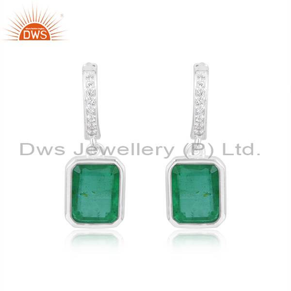 Doublet Zambian Emerald Quartz & Cz Earrings For Women
