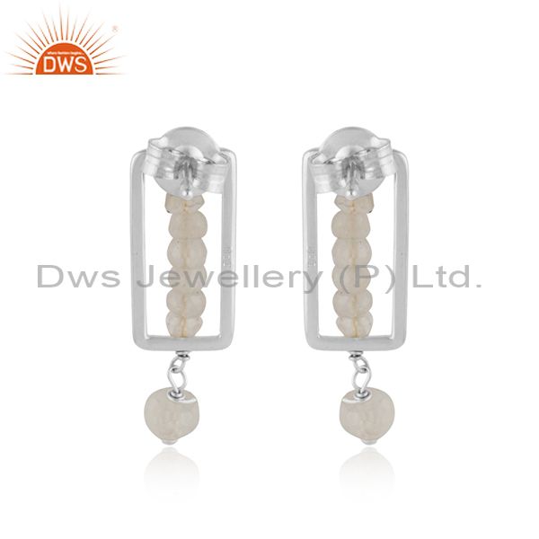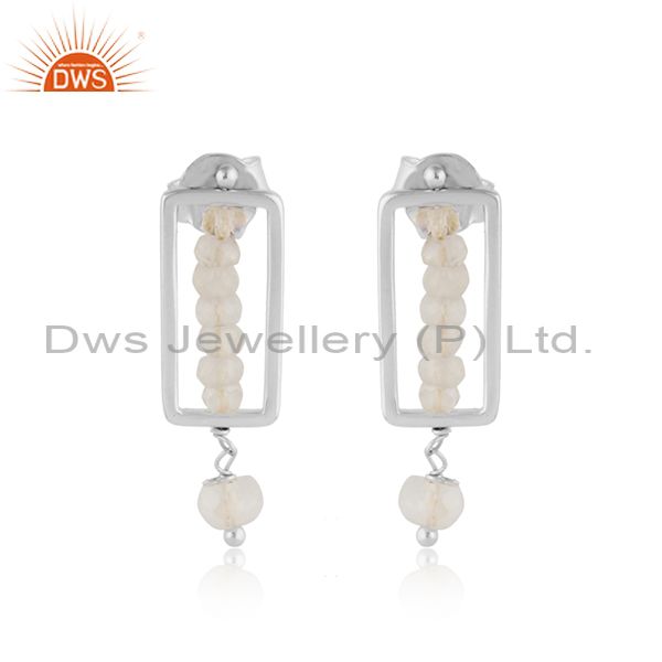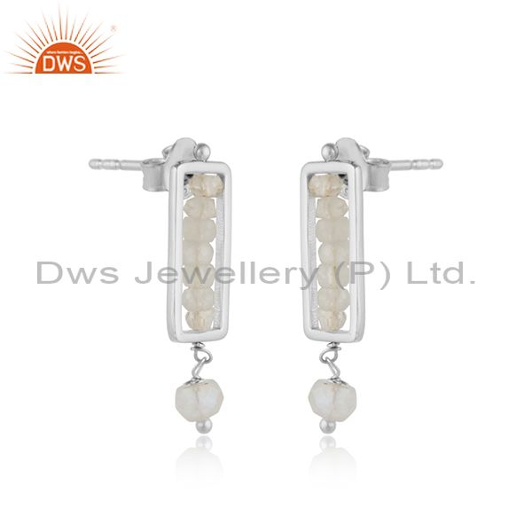 Drop Beaded Rainbow Moonstone 925 Fine Sterling Silver Earrings