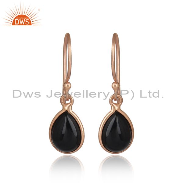 Drop Black Onyx Gemstone Rose Gold On 925 Silver Earring