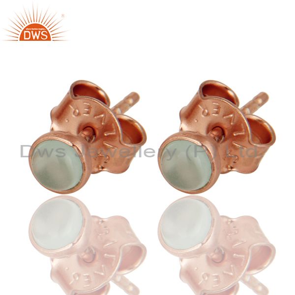 Dyed Aqua Blue Chalcedony 18K Rose Gold Plated Sterling Silver Stud Earrings