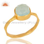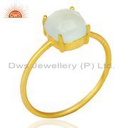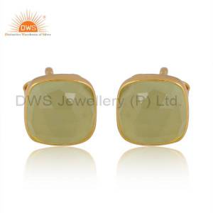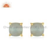 Dyed Aqua Chalcedony Gemstone Stud Earrings In 14K Gold Over Sterling Silver