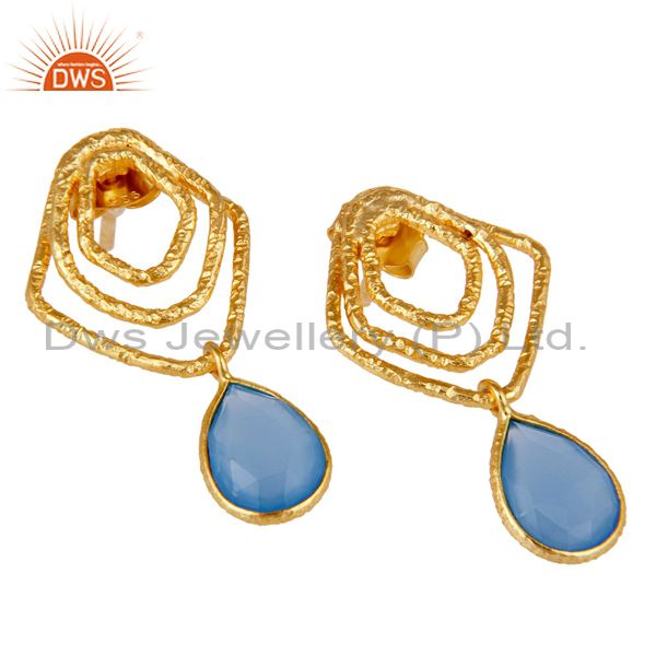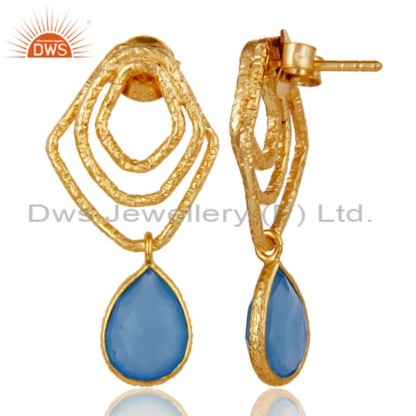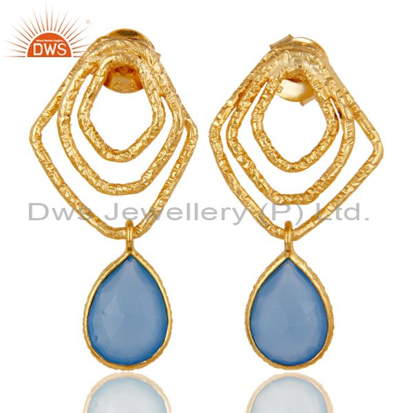 Dyed Blue Chalcedony New Fashion Earrings With 18K Gold Plated Sterling Silver