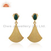 Dyed Emerald Gold On 925 Silver Textured Stud Earrings