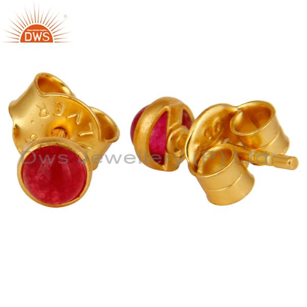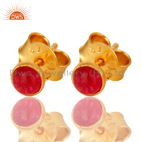 Dyed Pink Chalcedony Round Gemstone Stud Earrings In 14K Gold On Sterling Silver
