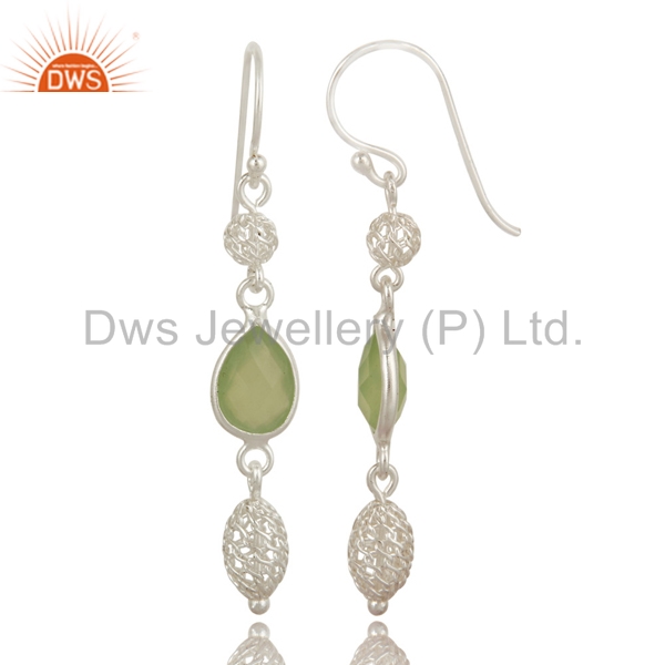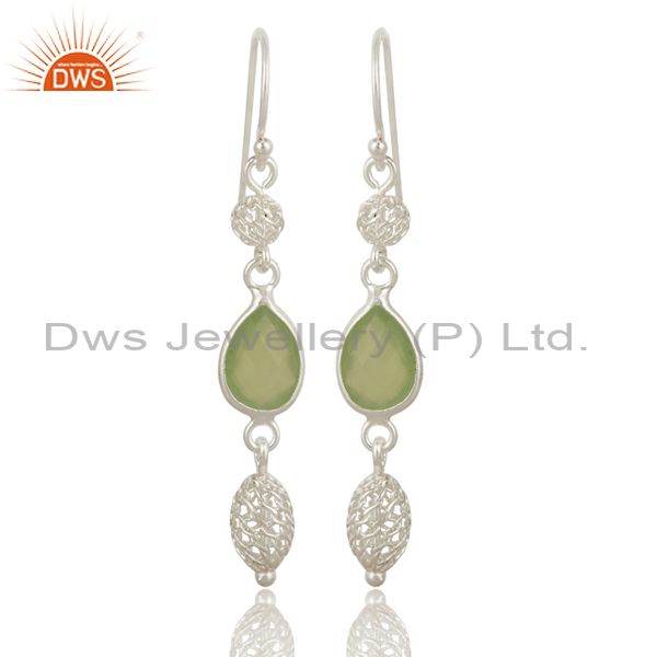 Dyed Prehnite Chalcedony Sterling Silver Designer Dangle Earrings