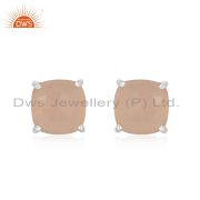 Dyed Rose Chalcedony Gemstone Stud Earrings In 18K Gold Over Sterling Silver