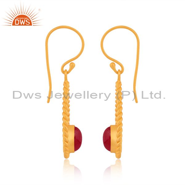 Dyed Ruby Gemstone Rope Design Gold Plated Silver Earring