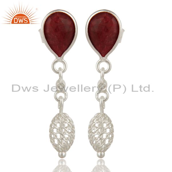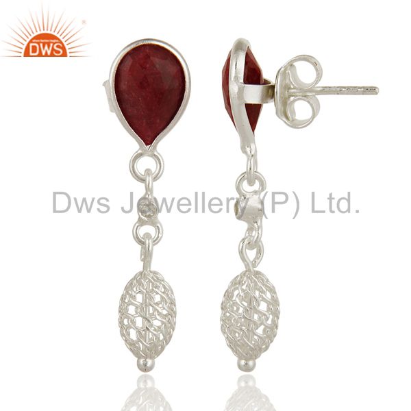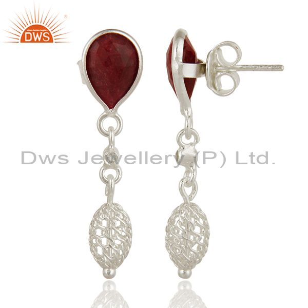 Dyed Ruby Red Corundum Solid Sterling Silver Designer Earrings