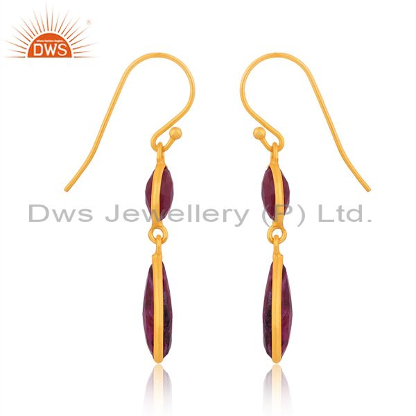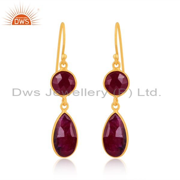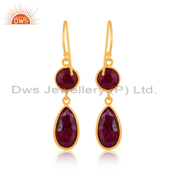 Dyed Ruby Set Gold On 925 Sterling Silver Statement Earrings