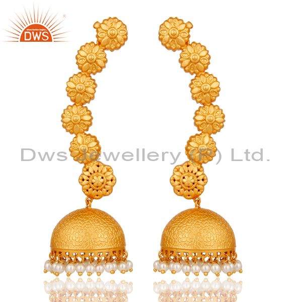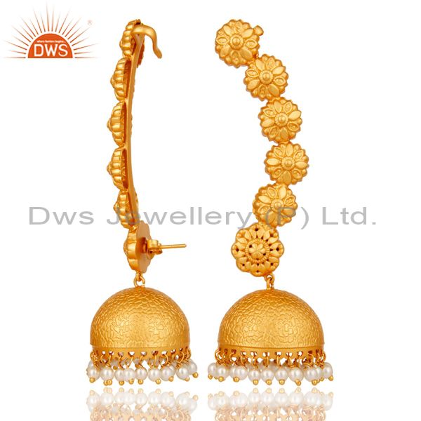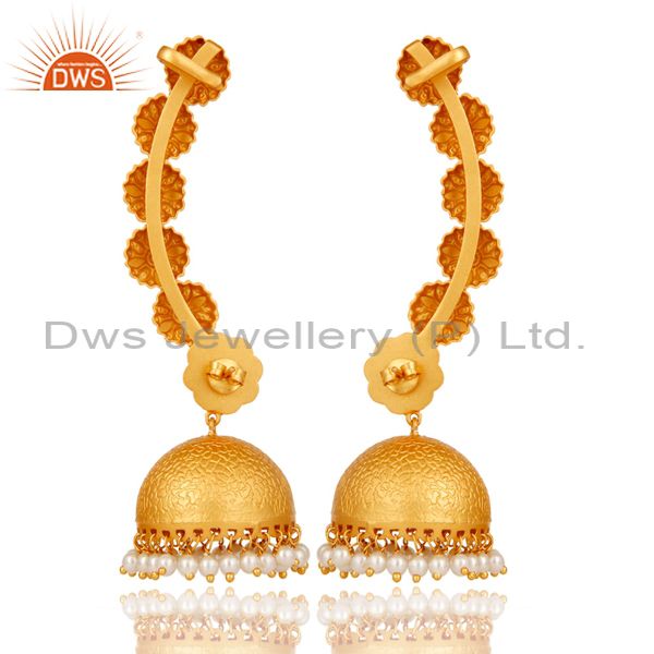 Ear Cuff Traditional Jhumka with 18K Gold Plated Sterling Silver and Pearl