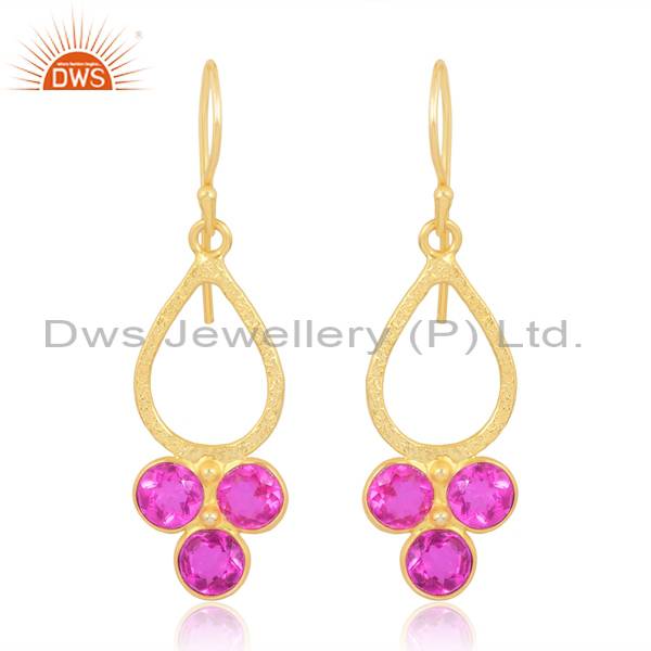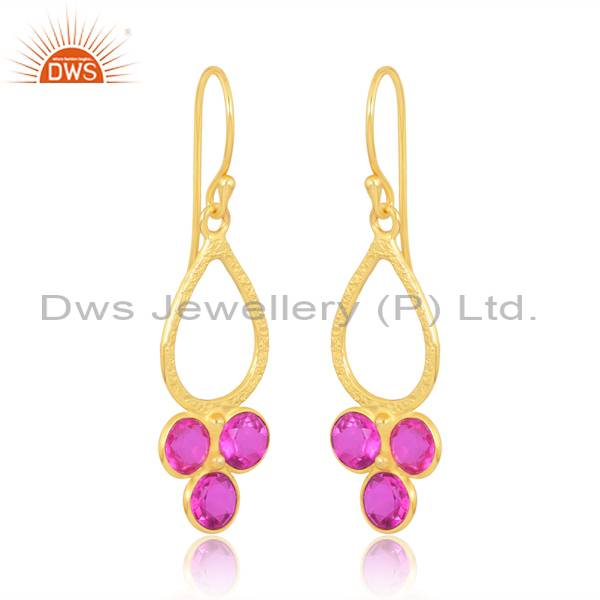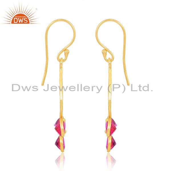 Earrings 18K Gold Silver Rubellite Tourmaline Quartz