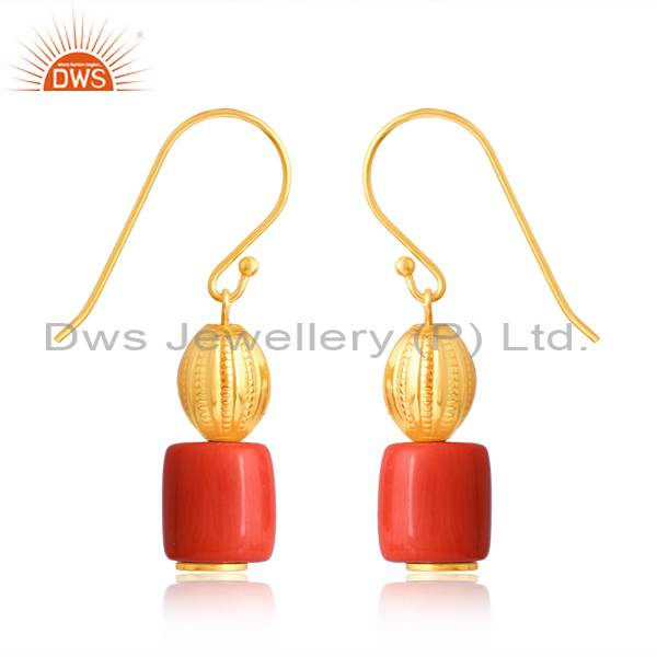 Earrings Of Timeless Beauty Silver & 18K Gold Cultured Coral