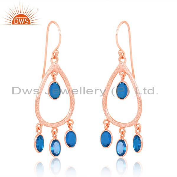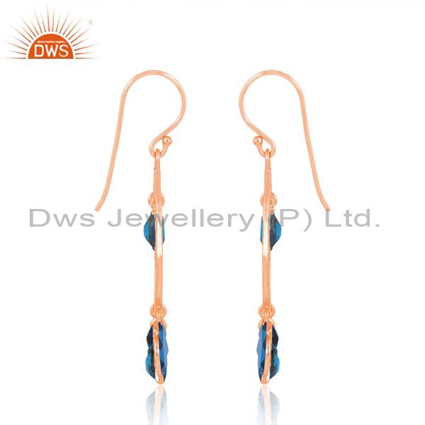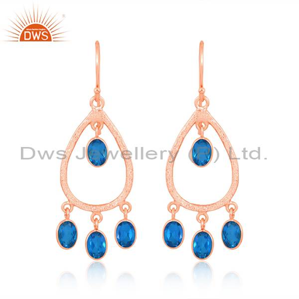 Earrings Silver Rose 18K Doublet Blue Topaz Quartz Cut Oval