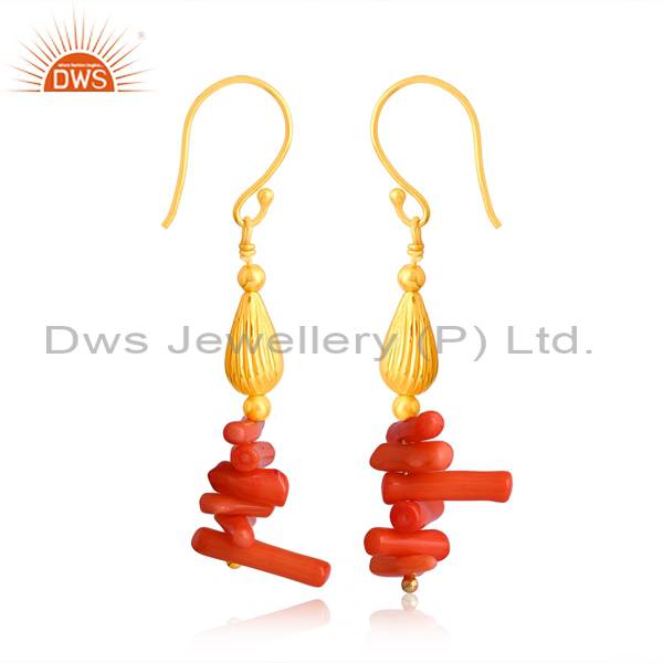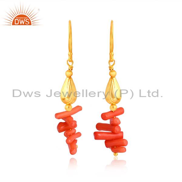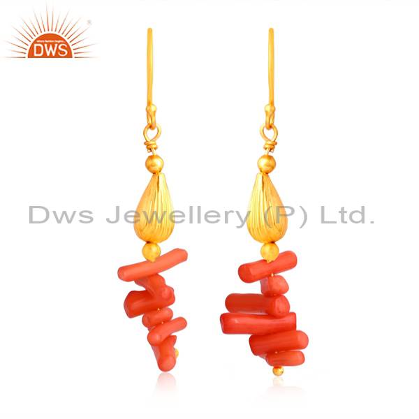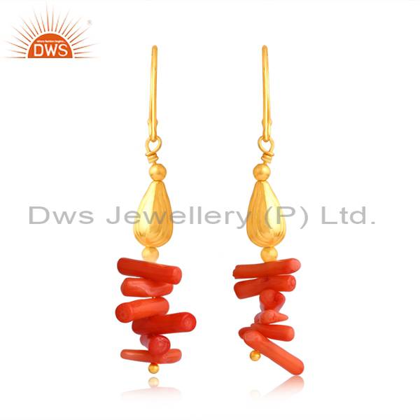 Elegant 18K Gold Silver Pink Coral Cultured Uncut Earrings