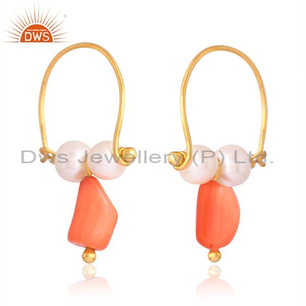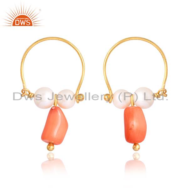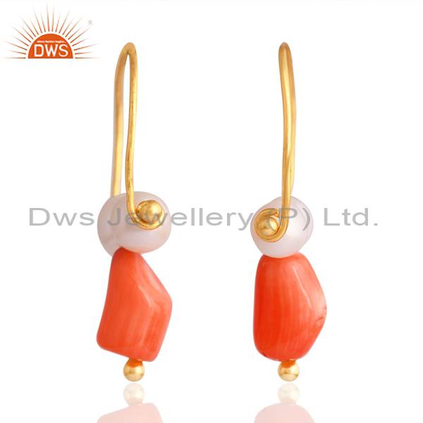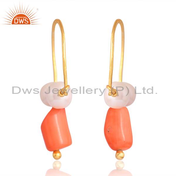 Elegant 18K Gold Sterling Silver Pink Tumbled Pearl Earrings