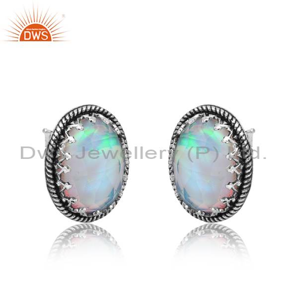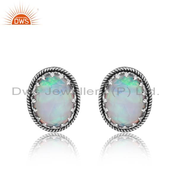 Elegant And Eye-Catching Oval Cut Aurora Opal White Studs