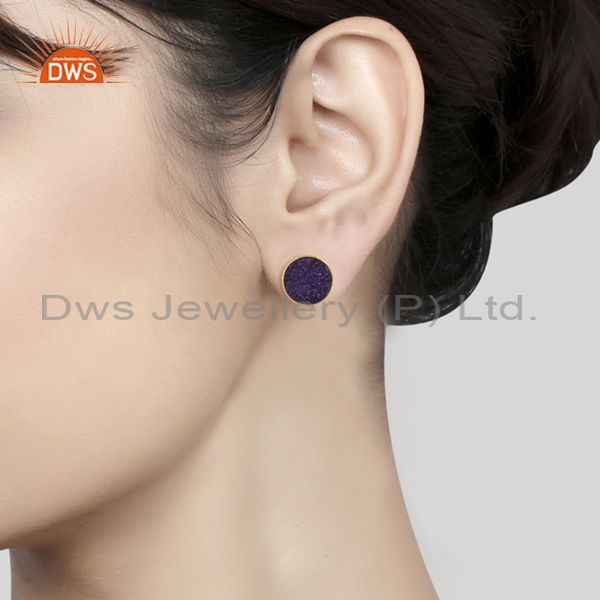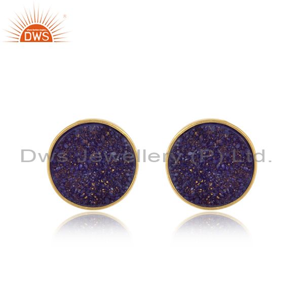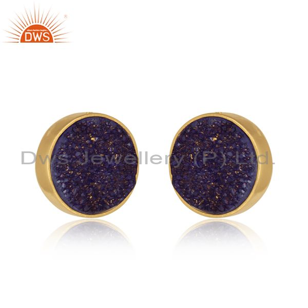 Elegant Dainty Studs in Yellow Gold on Silver 925 with Purple Druzy