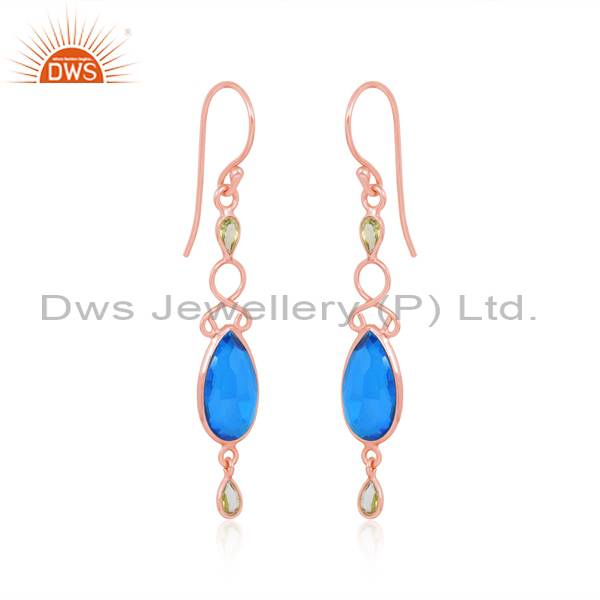 Elegant Doublet Earrings With Swiss Blue Topaz & Peridot