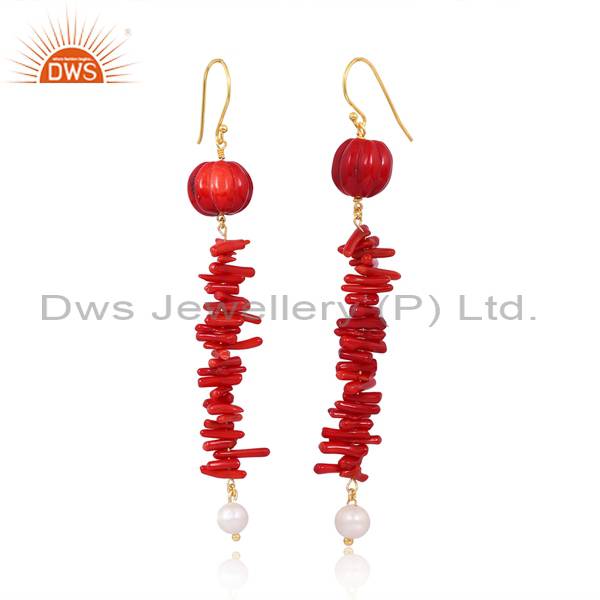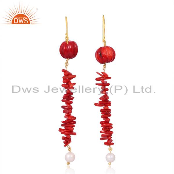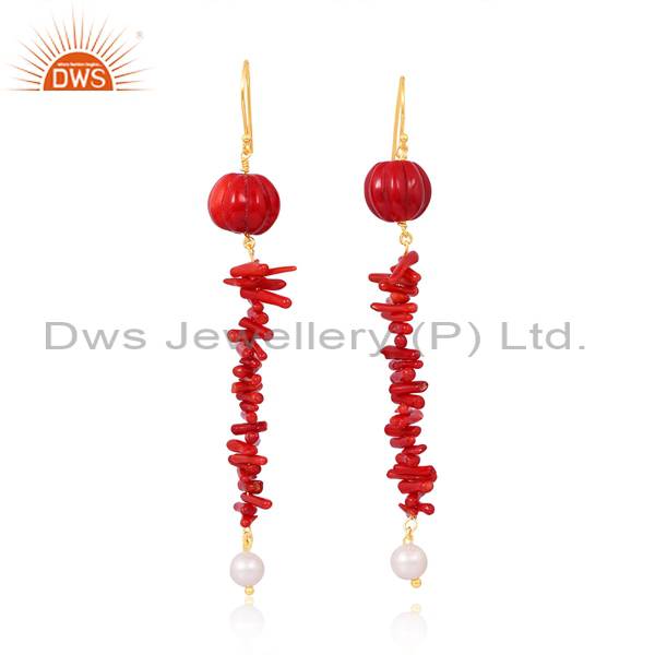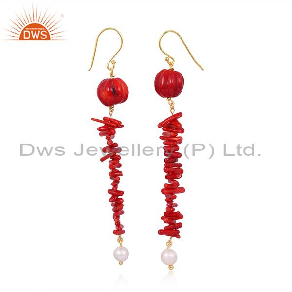 Elegant Silver Gold Earrings With Coral And Pearl Beads