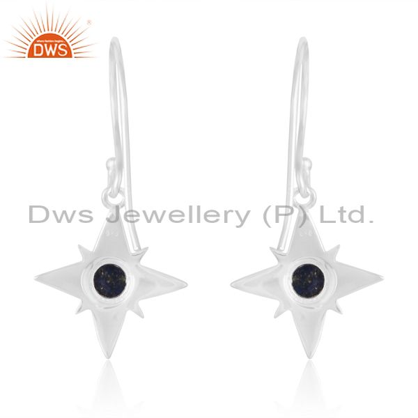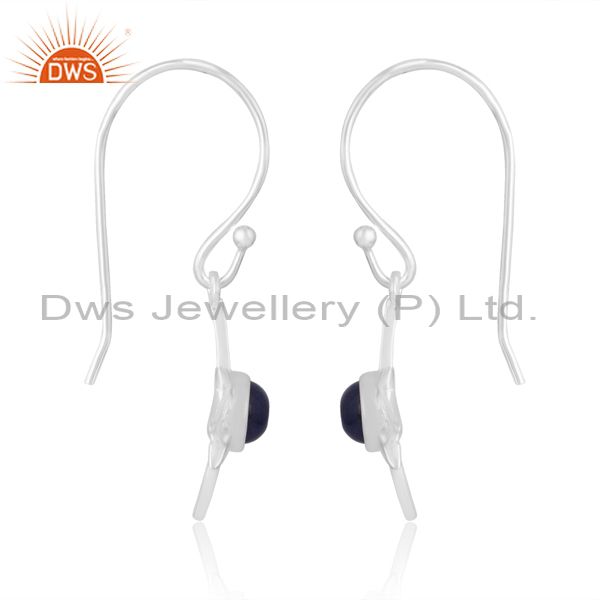Elegant Sterling Silver Lapis Cabushion Round Earrings