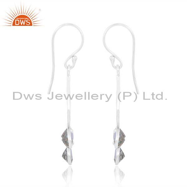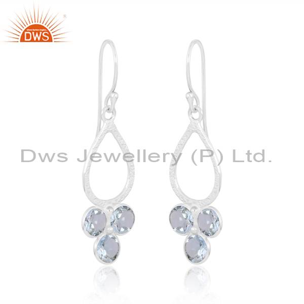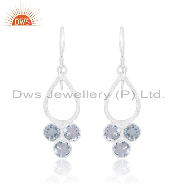 Elegant Sterling Silver White Blue Topaz Cut Round Earrings