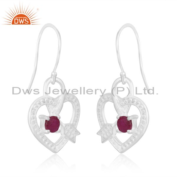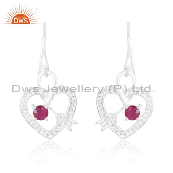 Elegant Sterling Silver White Ruby Cut Round Earrings