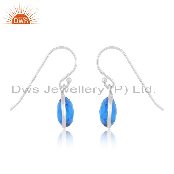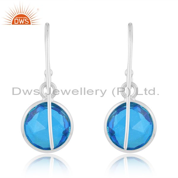 Elegant Swiss Blue Topaz On White Sterling Silver Earring