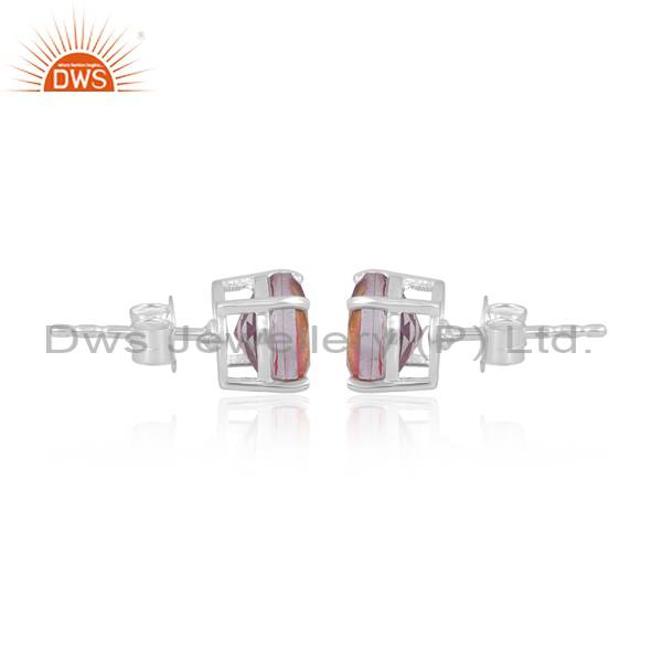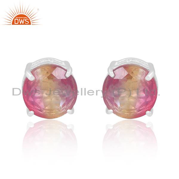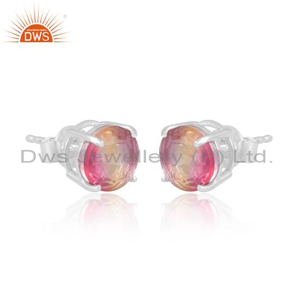 Elegant White Bio Ametrine Doublet Quartz Earrings In Silver