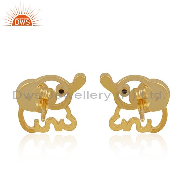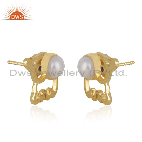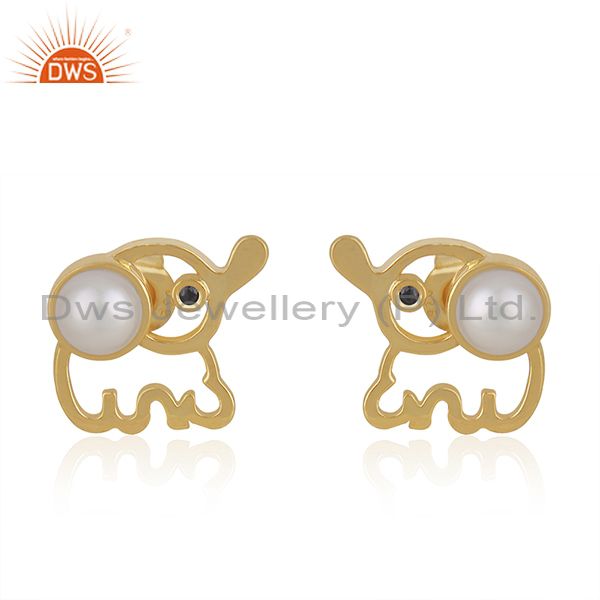 Elephant Design Customized 925 Silver Gold Plated Pearl Stud Earring Wholesaler
