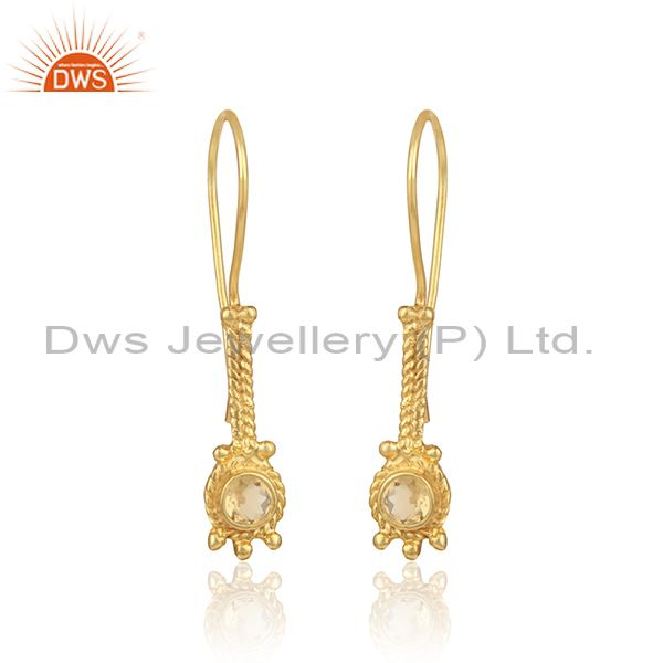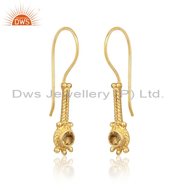 Elongated Design Earring In Yellow Gold On Silver With Citrine